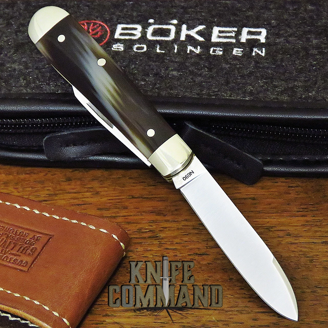 Boker’s description…The Boker Swell-End Jack is another classic knife shape, which was to be found on European farmers’ markets and in the typical general shops of American settlements since the turn of the century. The handy pocket knife owes its name to its traditional design, which becomes noticeably wider towards the end of the handle, thus shifting the knife’s center of gravity backwards. In addition to the satin-finished main blade of ice-hardened N690 with 60 to 61 HRC, the knife is also equipped with a cap lifter that can also be used as a screwdriver. The blade has a modern ricasso and is opened by nail nick. The operating safety of the slipjoint is increased by a 90 degree arrestor during opening and closing. The handle scales are made of deceptively realistic looking synthetic horn, which combines the low maintenance and robustness of a synthetic material with the look of a natural material. The characteristic bolsters are made of nickel silver. Handmade in the Boker Knife Manufactory in Solingen.