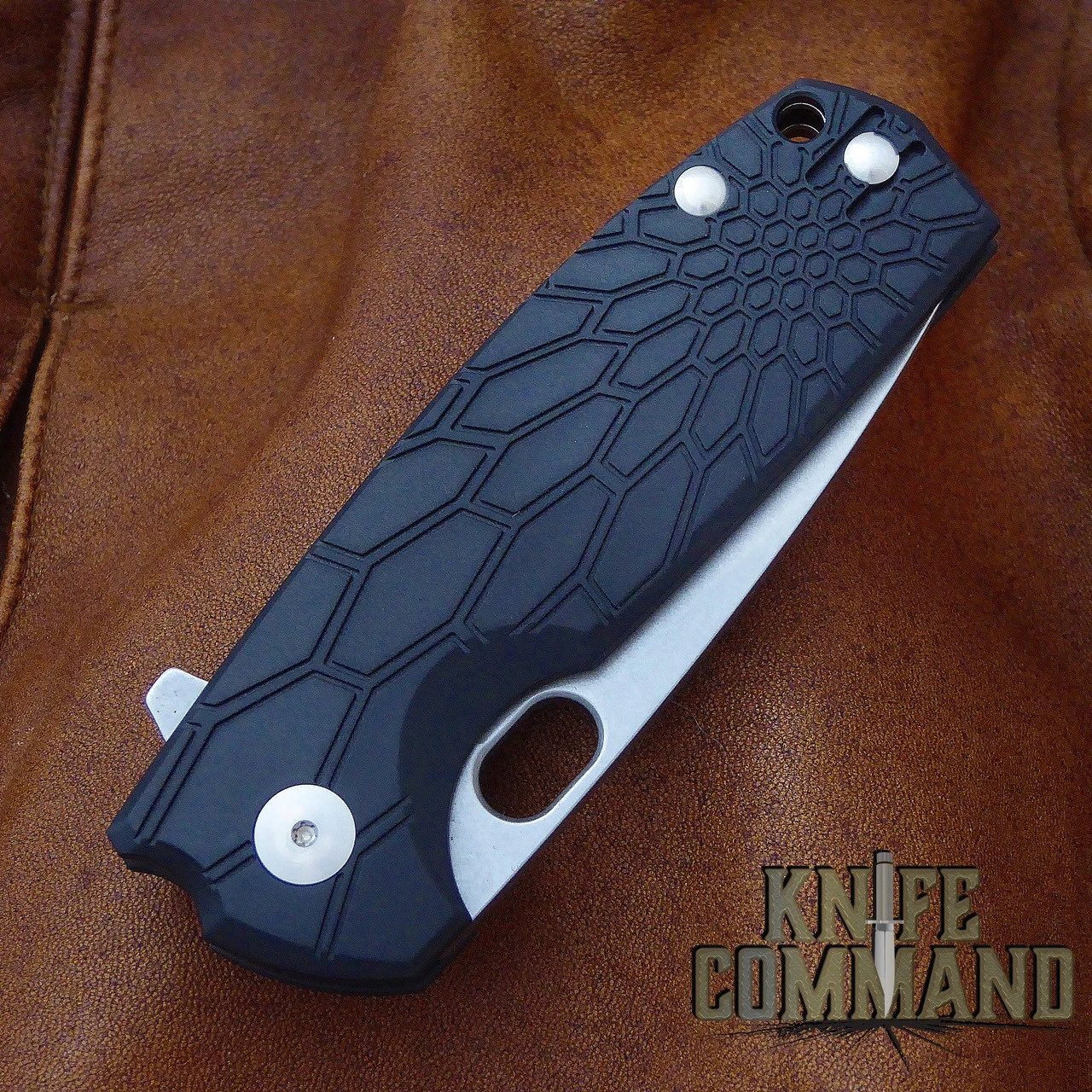This knife is especially suited for every day carry. It measures 7 open length, 4-1/2″ closed length, and weighs only 4.7 oz. The 4mm thick, Stonewash finished, drop-point blade is 3″ long and is forged from N690Co Cobalt Vanadium stainless steel with a 58-60 Rockwell hardness. A thumb hole, flipper tang, and ball bearing pivot allow for easy one-hand opening. The Black handle is FRN with black nested stainless steel liners a liner lock design. The Core features a black anodized aircraft aluminum back spacer, a lanyard hole, and a reversible steel pocket clip. Comes complete, brand new in original Fox box.