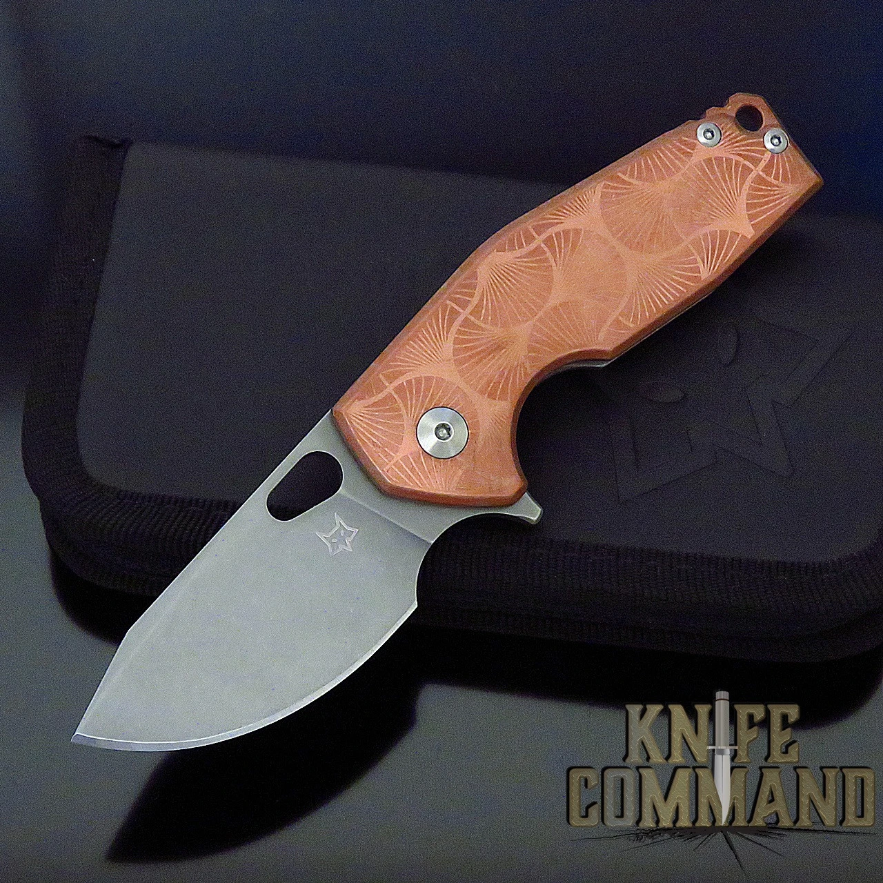 The Suru is one of the best EDC knives available. It measures 5-3/4″ open length, 3-1/2″ closed length, and weighs 4.4 oz. The .4mm” thick, drop-point blade is 2.36″ long and is made of powder metalurgy CPM-20CV stainless steel with a stonewash finish. A thumb hole, flipper tang, and ball bearing pivot allow for easy one-hand opening. The laser designed Copper handle has bead blasted titanium hardware. The titanium framelock design keeps the blade very secure in the open position. The Suru features a copper back spacer with an integral lanyard hole. An acid stonewashed titanium pocket clip is used for easy pocket carry. This award winning folder is brand new in original Fox box with a zippered leather Fox case.