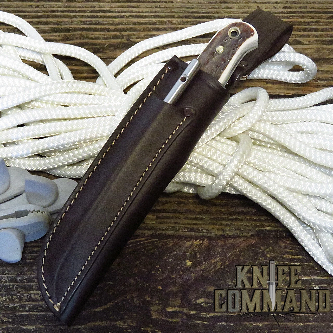 The Custom Stag H.D Boat knife is a heavy duty piece of cutlery. From small boats to yachts to ships, any sailor would love to have this one on board. This fine knife is made in Solingen, Germany. Knife Command is an authorized Linder Solingen dealer.