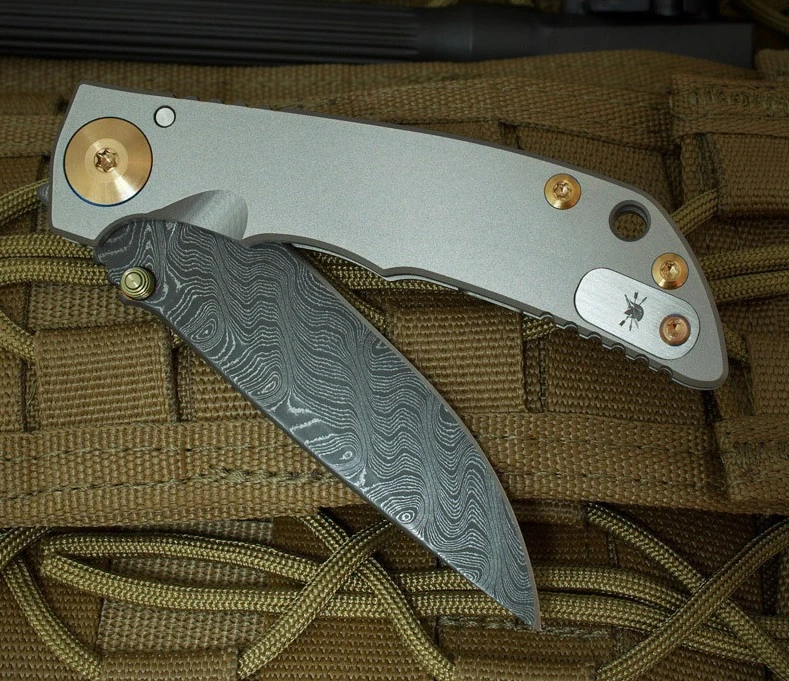 The Spartan Harsey Folder 3.25 “SHF 3.25” This is Spartan Blades latest folder collaboration with legendary knife maker, William “Bill” Harsey Jr. The SHF 3.25 is the knife many of you have been waiting for! A reliable 6AL4V titanium frame-lock knife with a 3.25” Chad Nichols Damascus blade. Easy to carry and comfortable in the hand; a truly exceptional gentleman’s (or ladies) folder. Constructed like its award winning big brother the SHF, the SHF 3.25 is made of 6AL-4V titanium with beautiful Bronze hardware. This medium sized folder has a reversible pocket clip and dual thumb studs allowing for left and right hand carry. If you are looking for a high quality and well designed folder this is one you should strongly consider!